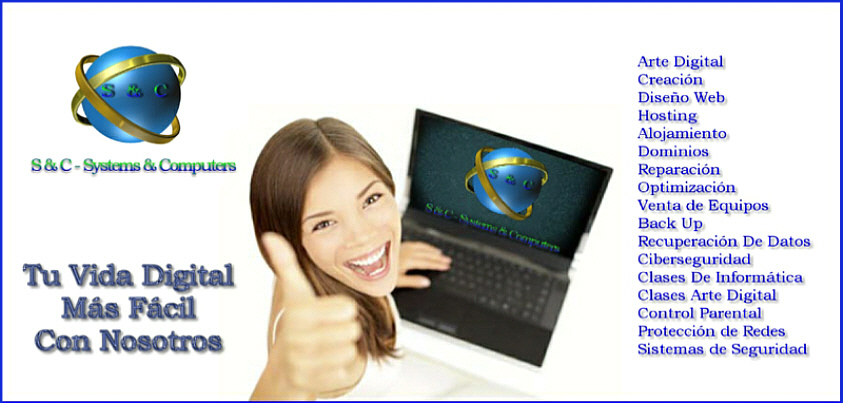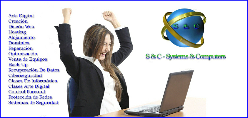 Visite el siguiente enlace Quiénes Somos para conocer todos los servicios que le ofrecemos. En S & C le asesoraremos y haremos que saque el mayor rendimiento de los aparatos tecnológicos que posea, haciéndolos rendir al 100 % de su capacidad, tanto así cómo si quiere una página web corporativa, dominio o hosting con transferencia ilimitada con las mejores ofertas del mercado.